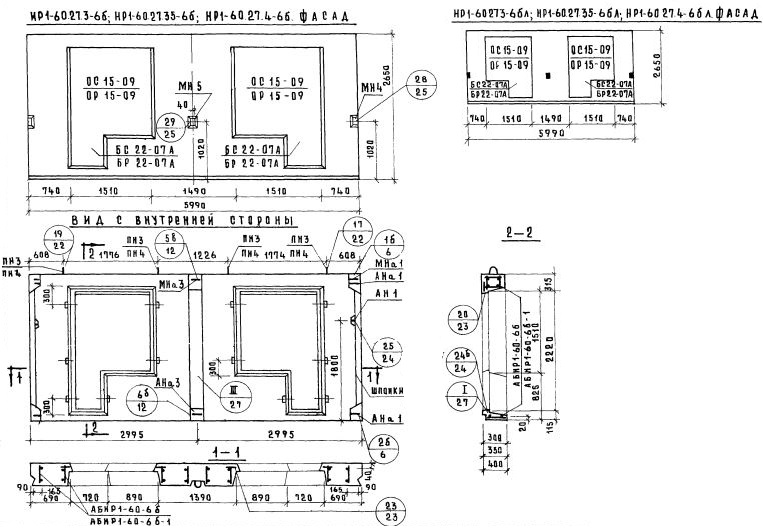 НР1-60.27.35-6бл   Наружная стеновая панель рядовая по Серии 1.132-1.