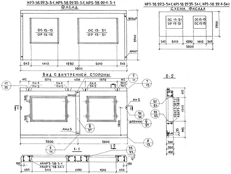 НР5-58.29.4-5-1   Наружная стеновая панель рядовая по Серии 1.132-1.